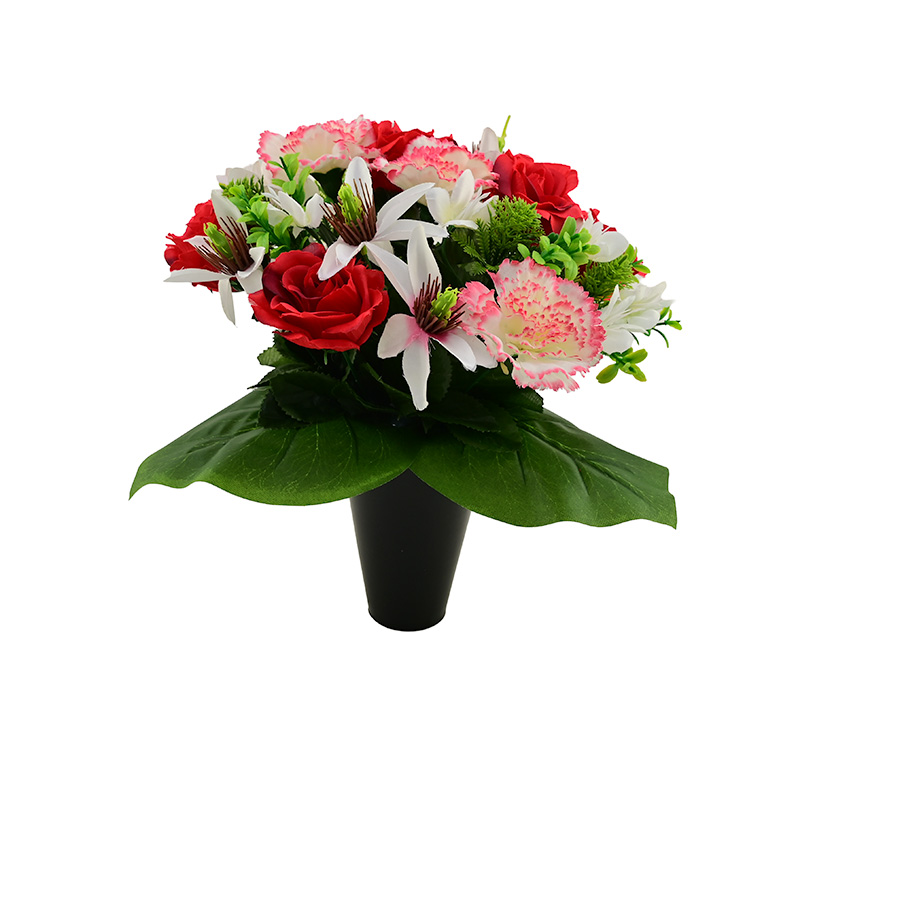 Kunstbloemstuk binnenvaas anjer rozen vulling .