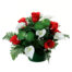 kunstbloemstuk in ronde pvc pot met orchidee roos rozebot sneeuwbal